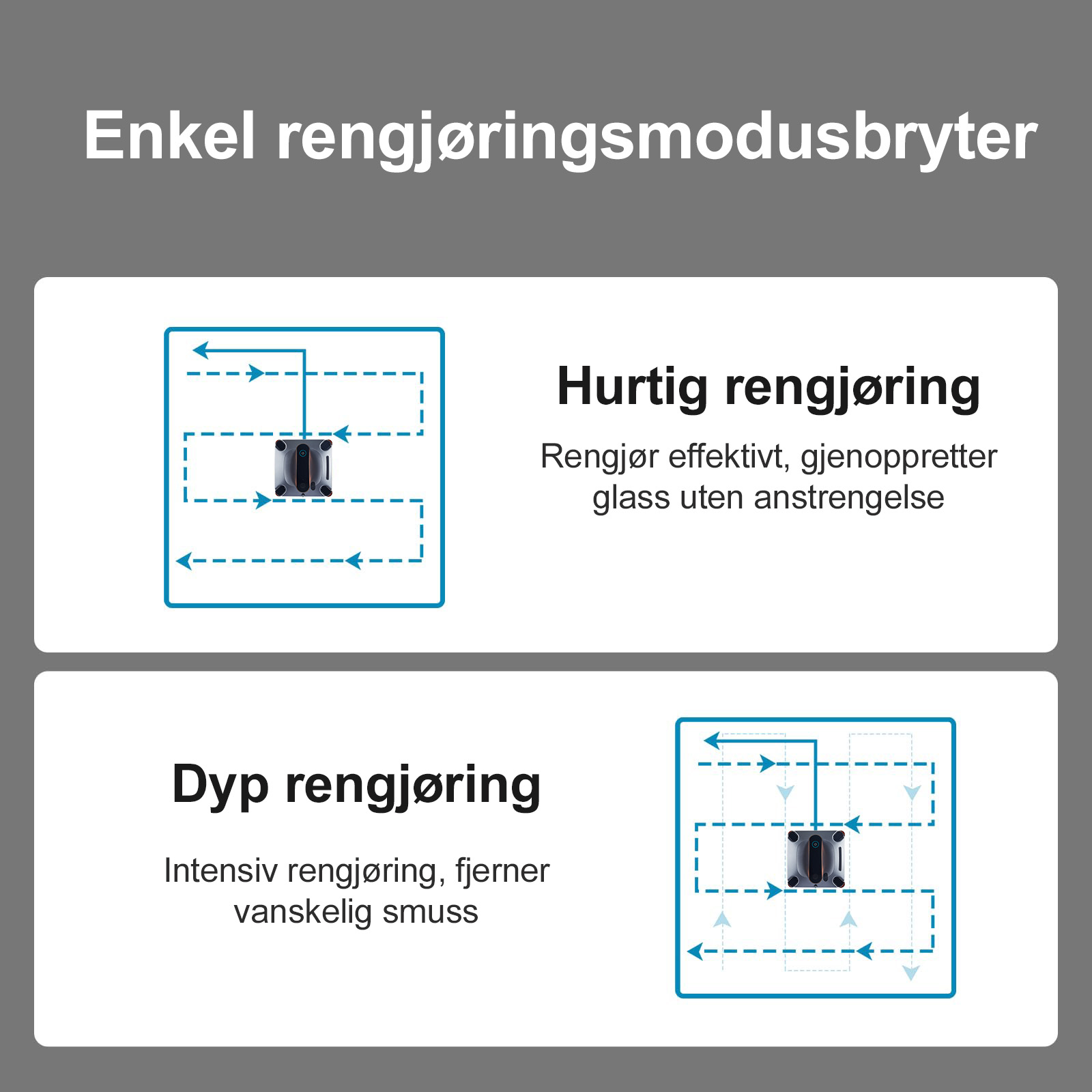 | Rengjøringsmodus | Dyp rengjøring, rengjøring ovenfra og nedenfra, rengjøring fra venstre og høyre, punktrengjøring |
